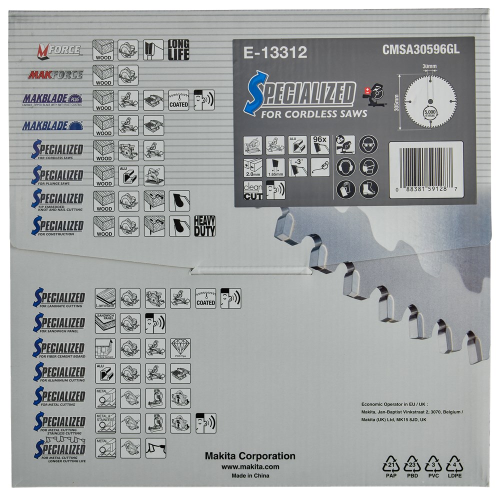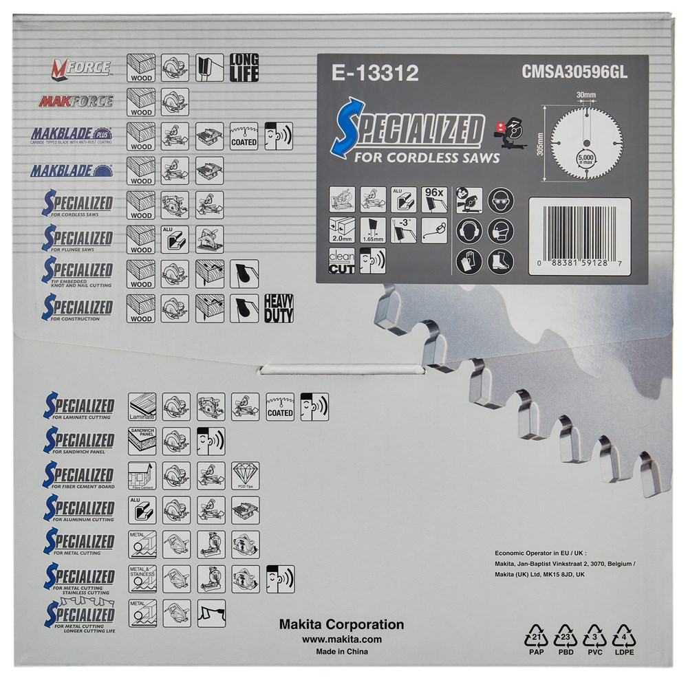 Contacteer onsMakita Artikelnummer: E-13312 CIRKELZAAGBLAD. EFFICUT TCT. 305 X 30 MM. 96 T