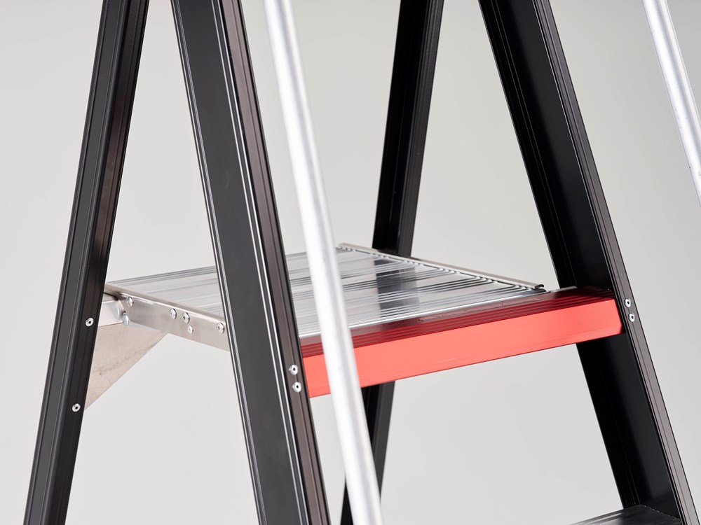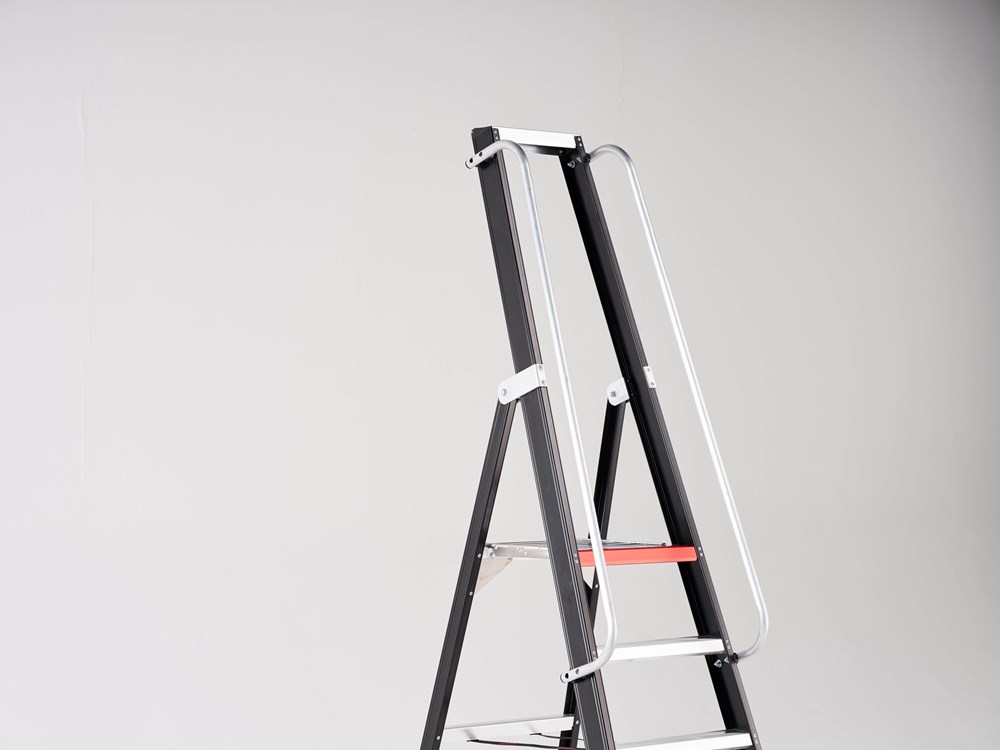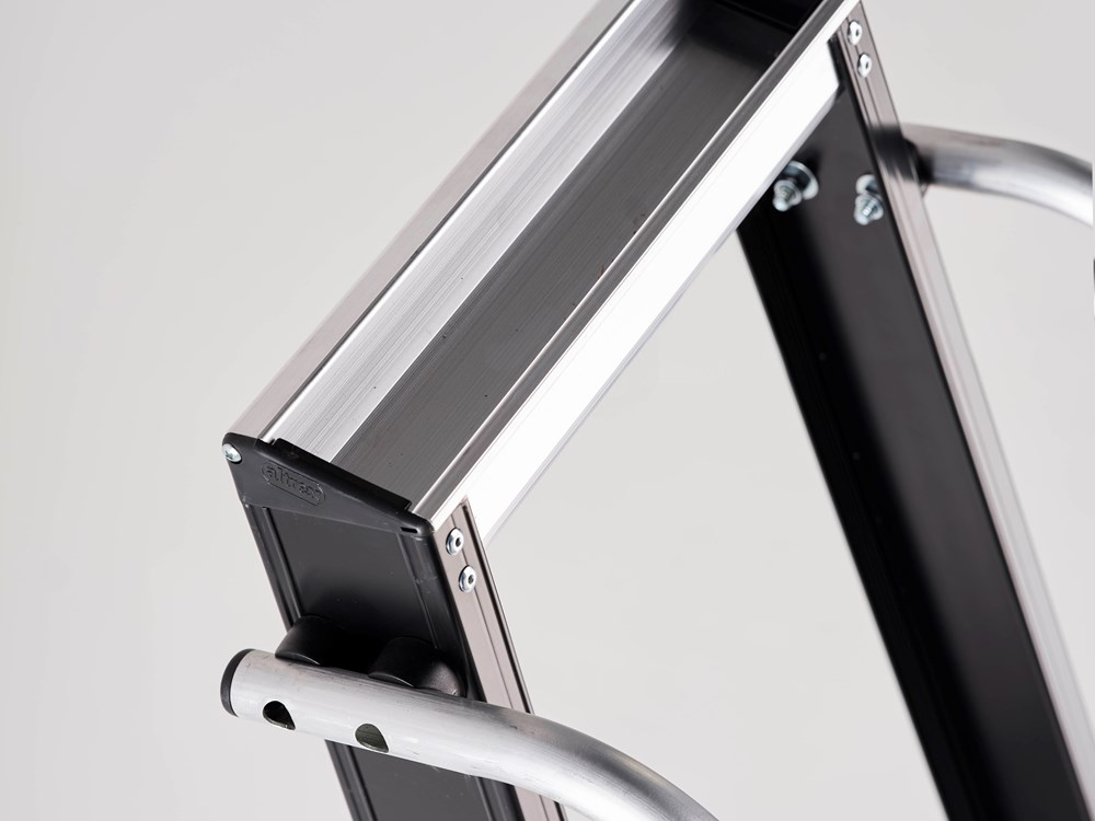Lichtgewicht platformtrapDe Eifel is een lichtgewicht platformtrap. Door het gebruik van lichte materialen is deze robuuste trap nog steeds eenvoudig te verplaatsen.