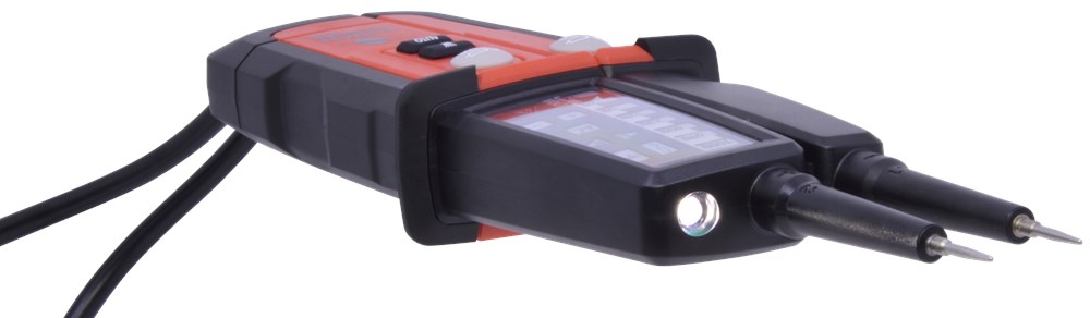 Contacteer onsTweepolige spanningstester voor het zeer snel detecteren van kringen onder spanning (de 2 pennen passen precies in stopcontact) en het uitvoeren van doorgangstesten. Robuuste behuizing met ingebouwde LED zaklamp en CAT III 1000V / CAT IV 600V veiligheidsspecificatie.