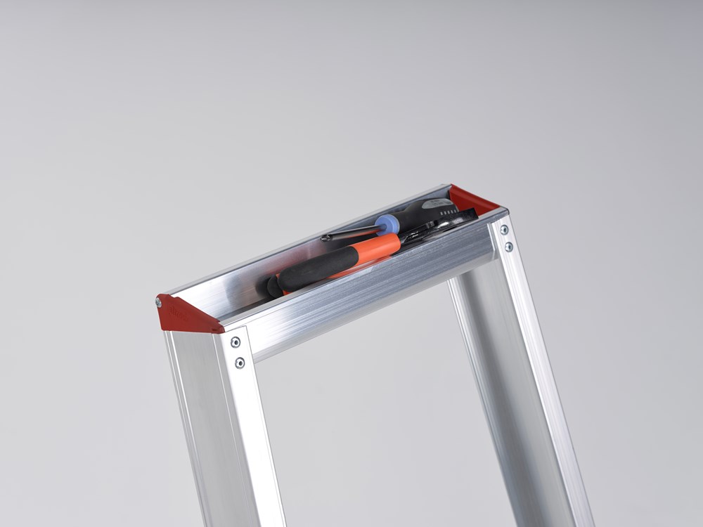 Sierra (SEO) enkel oploopbaar. De professionele trap voor de vaardige klusser en vakman.De Sierra is een robuuste professionele trap. Ideaal voor de wat zwaardere klussen thuis óf voor professionele projecten. Ondanks het robuuste ontwerp is de trap licht van gewicht door het open trede profiel. De stevige trapvoeten zorgen voor stabiliteit. Bovendien zorgt het antislip profiel ervoor dat je niet wegglijdt.