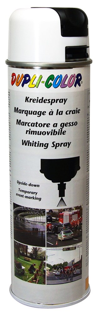 Contacteer onsDUPLI-COLOR Eventmarker is een witte markeringsspray, ideaal voor markeringen die slechts een korte tijd zichtbaar moeten blijven (vb. sportevenementen, beurzen, plaatsen van een ongeval). Dankzij de speciale krijtbasis, blijft de markering slechts enkele dagen tot weken zichtbaar en verdwijnt ze snel in periodes van aanhoudende regen of op plaatsen met druk verkeer. Doordat de inhoud niet schadelijk is voor planten, ook ideaal voor in de tuin of voor sport- en golfterreinen.
