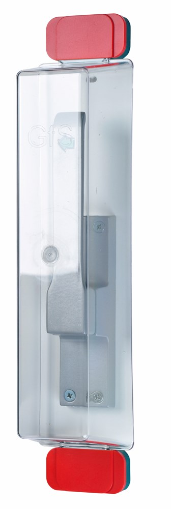 Contacteer onsDe GfS Exit Cover (beschermkap) bij raam- en deurkrukken vormen een voordelige en eenvoudig te monteren oplossing om misbruik bij nooduitgangen te voorkomen en gelijktijdig de in gevaar verkerende personen steeds vrije doorgang te bieden. De plastic beschermkap bestaat uit een harde onbreekbare acryl kunststof kap welke niet versplinterd zodat deze telkens opnieuw kan worden gebruikt. De kunststof beschermkap werkt met een veiligheidssluiting met behulp van een breekplaat met rood-groen kenmerk.