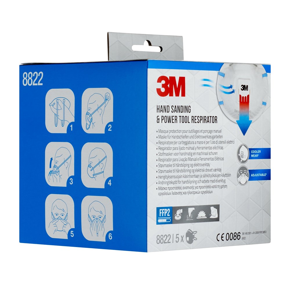 Contacteer onsGebruik het 3M™ Stofmasker voor handmatig en machinaal schuren 8822 voor comfortabele bescherming tijdens boren, zagen en handmatig of machinaal schuren. Ons geventileerde stofmasker is ontworpen om bescherming op FFP2 niveau te bieden tegen middelhoge niveaus van fijnstof en nevel op olie- of waterbasis zoals die gewoonlijk voorkomen bij werken met cement, hout en staal.