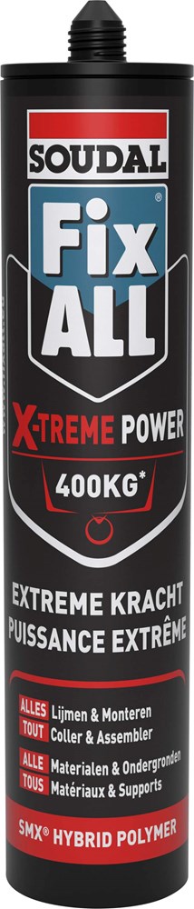 Contacteer onsFix All X-treme Power is perfect voor het verlijmen van extreem zware lasten zonder ondersteuning (tot 400 kg/m²). Kan zowel binnen als buiten gebruikt worden.