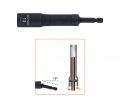 Hoekdopsleutel voorzien van flexibele E6,3 bitaansluiting, de lange E6,3 aansluiting kan zowel recht als tot 15° hoekverstelling gebruikt worden voor toegang tot de meest lastige plekken.
