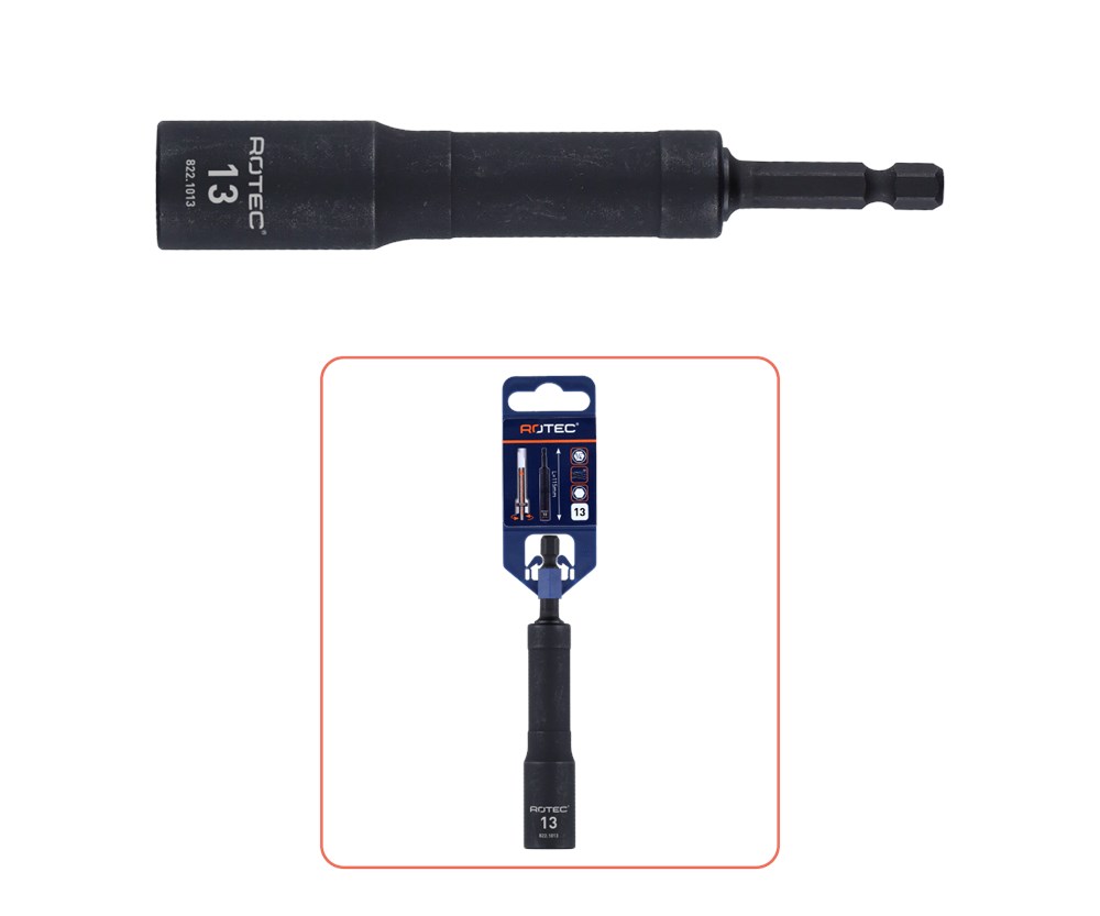 Geschikt voor het los-en vastdraaien van bouten en moeren, dankzij de inwendige lengte van 62mm ook geschikt voor het los- en vastdraaien van moeren op draadeinden.