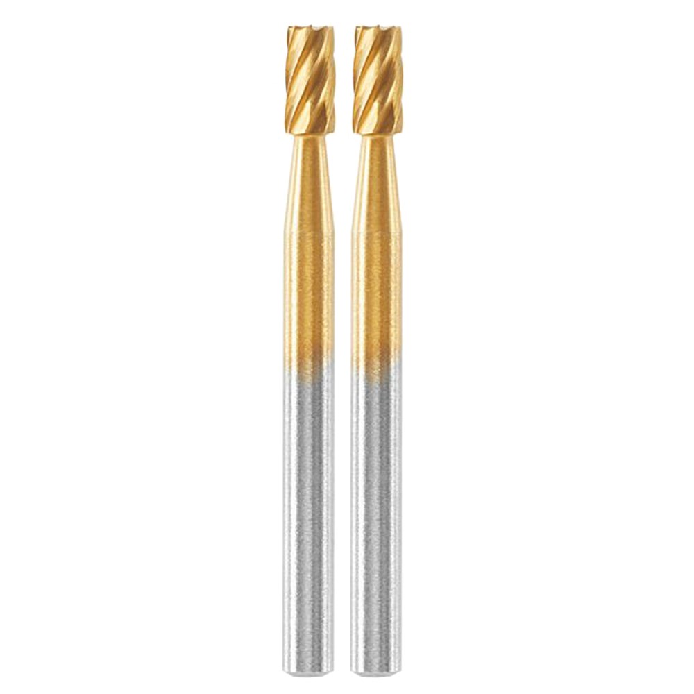 Het Dremel® Max accessoireassortiment, ontworpen door onze ingenieurs, zorgt voor maximale duurzaamheid en aanhoudende prestaties. De Dremel Max frees 194DM voor zwaar werk is bekleed met titaniumnitride om 2 keer langer mee te gaan dan het standaard accessoire zonder coating.De hogesnelheidsfrees van 3,2 mm is geschikt voor het gedetailleerd verwijderen van materiaal bij toepassingen als het frezen van profielen, uitsnijdingen maken, graveren, uithollen, precies snijden, groeven, sleuven en inlegwerk maken, conische gaten frezen of frezen uit de vrije hand. De cilindrische vorm van de frees maakt grondig verwijderen van materiaal mogelijk, freest platte vlakken, ronde kanten en maakt stopsneden en V-groeven. De punt van het accessoire maakt vlakke bodemsleuven en groeven, vlakke zijsneden en V-groeven, wanneer het in een hoek van 45 graden wordt gehouden.