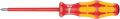 Wera VDE-schroevendraaier met meervoudige Kraftform-handgreep voor snel en veilig werken: Harde gripzones voor een hoge werksnelheid, zachte gripzones voor een hoge draaimomentoverdracht. Individueel getest in waterbad bij 10.000 V voor veilig werken bij de toegelaten spanning van 1.000 V. "Take it easy"-toolfinder met kleurcodering op profiel en maatcode – voor het eenvoudig en snel vinden van het benodigde gereedschap. Zeskantige wegrolbescherming verhindert telkens wegrollen op de werkplek.