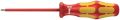 Wera VDE-schroevendraaier met meervoudige Kraftform-handgreep voor snel en veilig werken: Harde gripzones voor een hoge werksnelheid, zachte gripzones voor een hoge draaimomentoverdracht. Individueel getest in waterbad bij 10.000 V voor veilig werken bij de toegelaten spanning van 1.000 V. "Take it easy"-toolfinder met kleurcodering op profiel en maatcode – voor het eenvoudig en snel vinden van het benodigde gereedschap. Zeskantige wegrolbescherming verhindert telkens wegrollen op de werkplek.