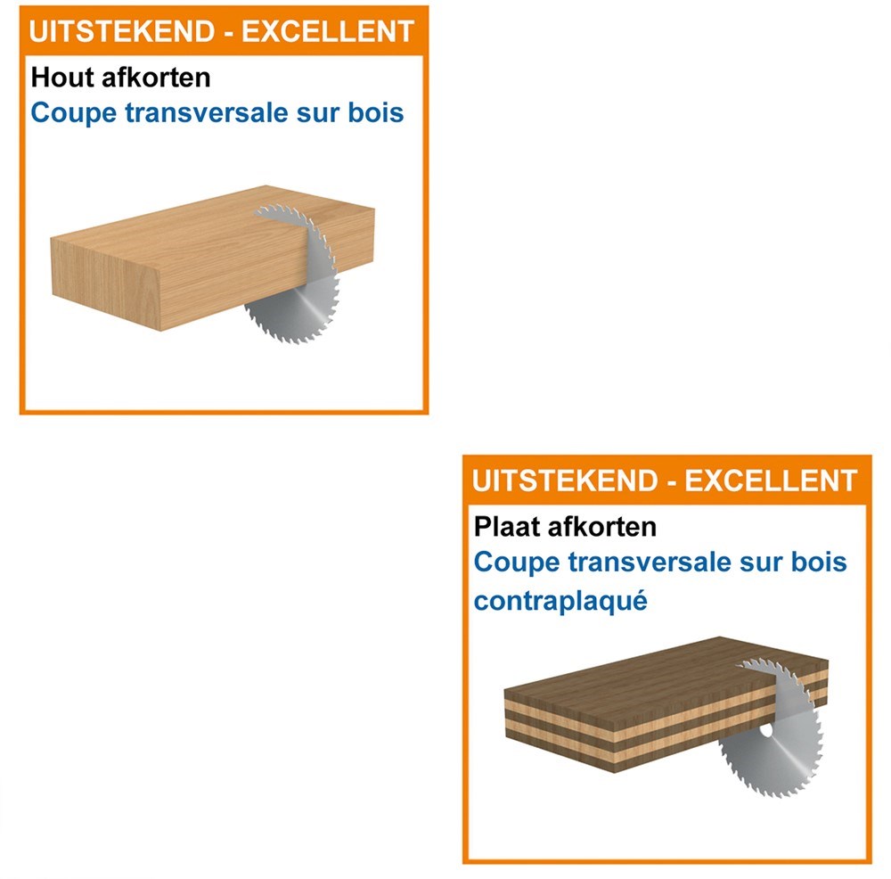 Materiaal: alle houtsoorten en op hout gebaseerde plaatmaterialen.