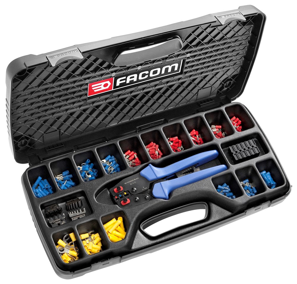 Contacteer onsFacom Artikelnummer: 855367 SAMENSTELLING INDUSTRILE ELEKTRICIEN. KRIMPTANG EN 20 MODELLEN VAN VO