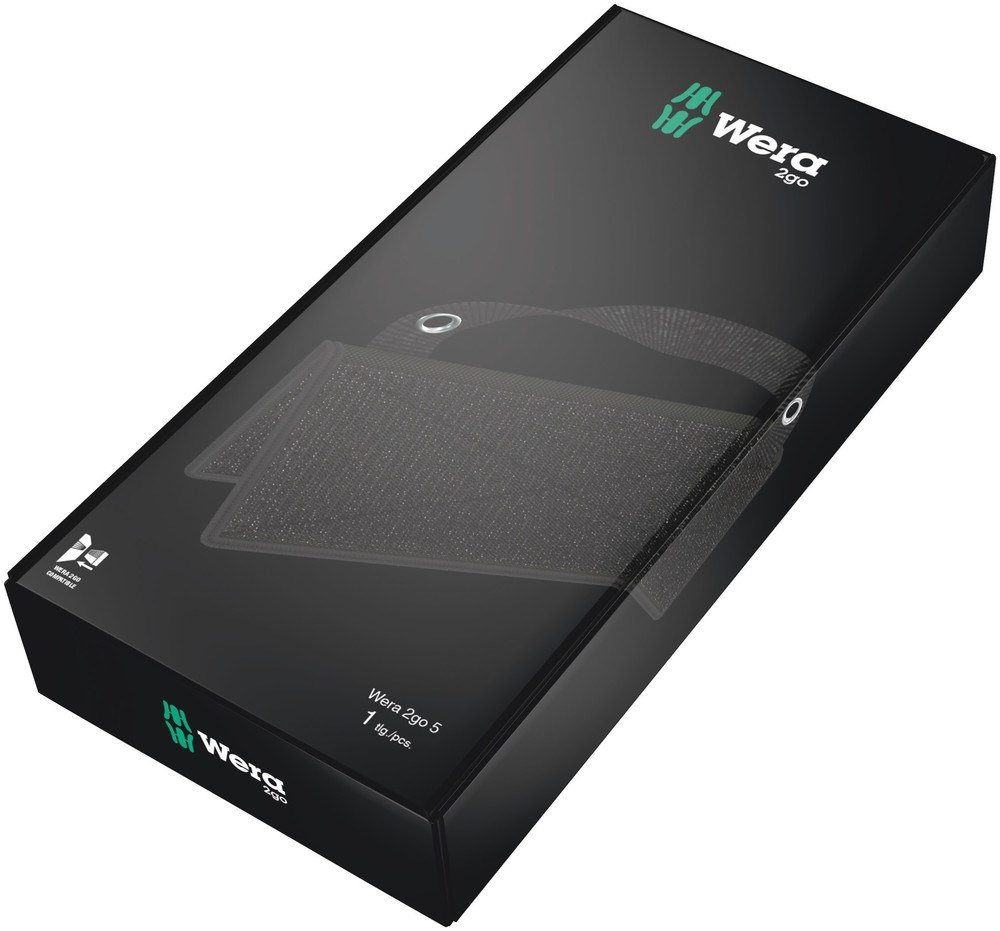 De Wera 2go 5 is een ultralichte en draagbare gereedschapstas die geschikt is voor alle Wera etuis en stoffen boxen met klittenband aan de achterkant. De etuis en boxen kunnen afzonderlijk gemakkelijk en veilig aan de Wera 2go 5 bevestigd worden.
