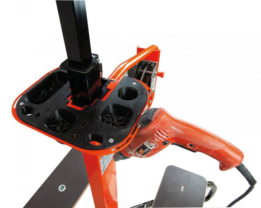 Contacteer onsGereedschapshouder die op de Levpano® past en het mogelijk maakt om uw schroevendraaier en schroeven binnen handbereik te hebben tijdens het werken op platforms. - Past op alle modellen van Levpano®, zelfs van eerdere generaties. - Metalen structuur voor extra stevigheid en plastic interieur voor lichtheid. - Stevig en stabiel: blijft in balans, zelfs met alle gereedschappen erop. - Stoort niet tijdens het staan op het platform. - Afgeronde randen om verwondingen te voorkomen. - Verwijderbaar. - Sleuven aanwezig aan beide zijden van de gereedschapshouder om de riemclips van elektrisch gereedschap in één beweging op te hangen. - Sleuf voor het plaatsen van de schroevendraaier. - Ruimte voor schroeven met schuine binnenranden voor gemakkelijke grip. - Meerdere ruimtes voor snel toegang rondom de Levpano® - Plaatsen voor kleine gereedschappen: schroevendraaiers, figuurzaag...