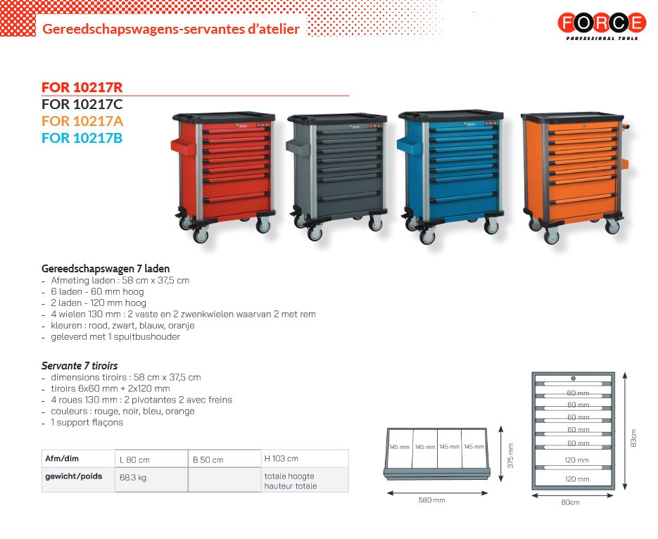 Contacteer onsFORCE Artikelnummer: ZGFOR10217C GEREEDSCHAPSWAGEN LEEG 7 LADEN ZWART