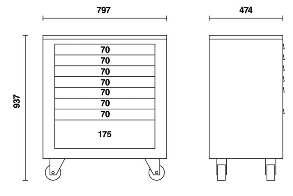 Contacteer onsBeta RSC55 Artikelnummer: 055000206 C55C8-GEREEDSCHAPSWAGEN MET 8 LADEN