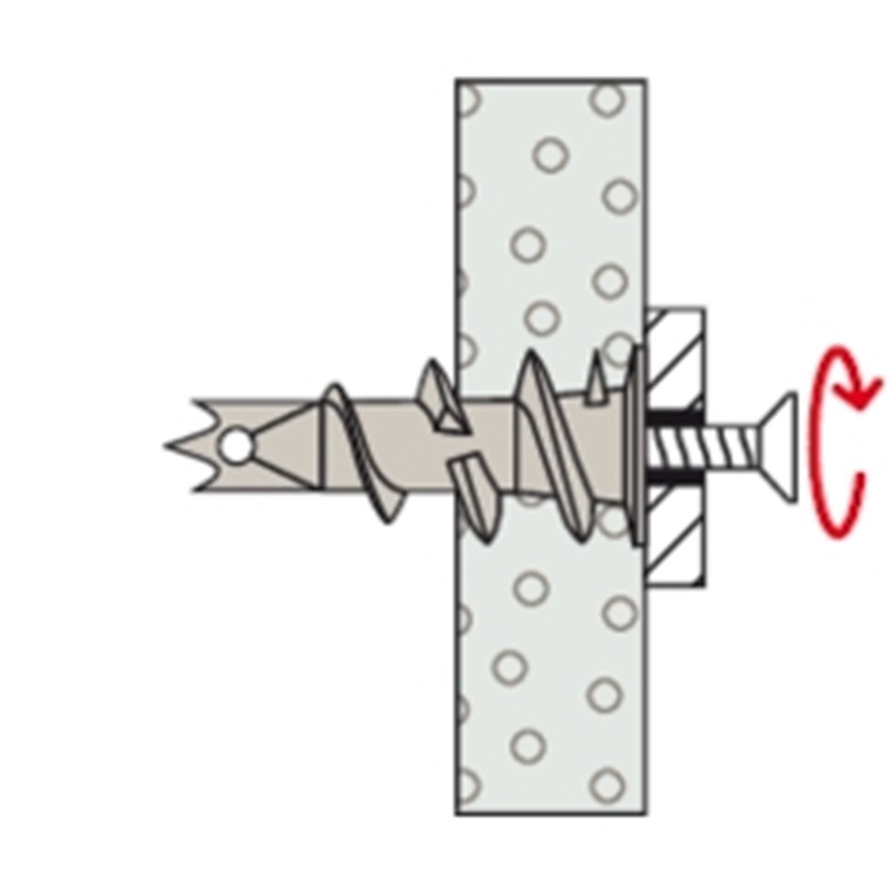 Contacteer onsDe fischer Gipsplaatplug GKM wordt gemaakt van metaal. De plug wordt in de voorsteekmontage met een accuschroevendraaier of met de hand lijnend met het oppervlak in de gipsplaten gedraaid. In enkelvoudige gipsplaten hoeft niet te worden voorgeboord. Bij gipsplaten en of dubbele gipswanden met een boor Ø 8 mm voorboren. De fischer GKM kan hout-, plaat- en spaanplaatschroeven van 4 tot 5 mm dik, evenals diverse haken en ogen opnemen. Daarmee is hij universeel geschikt om lampen en elektrische installaties, decoratie-accessoires betrouwbaar en snel te bevestigen.