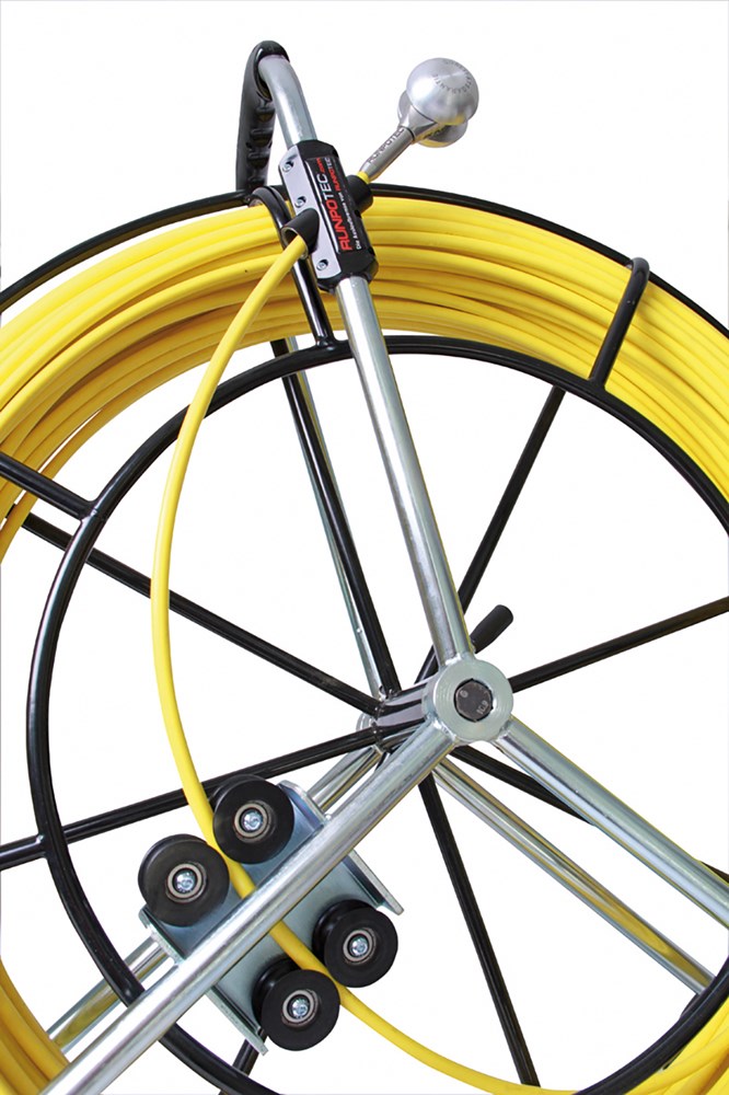 Contacteer onsGlasvezelstaaf Ø 9 mm, L: 120 m met stalen haspel en transportwielen
