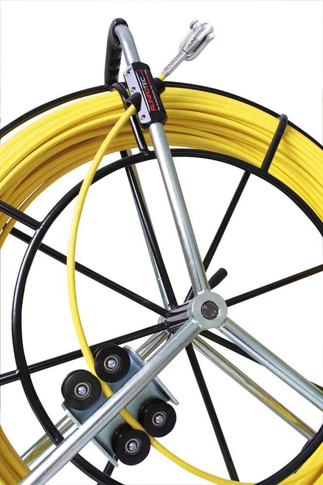 Contacteer onsRUNPOTEC Artikelnummer: PPRT 10080 GLASVEZELSTAAF 7.5 MM MET STALEN HASPEL EN TRANSPORTWIELEN - 100 M