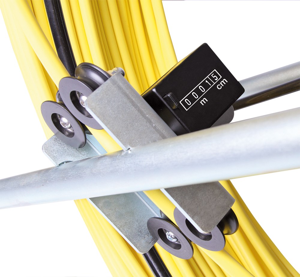 Contacteer onsGlasvezelstaaf Ø 7,5 mm, L: 100 m met stalen haspel en transportwielen