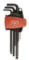 • Haakse zeskant stiftsleutelset, 9-delig, kogelkop, lange uitvoering, gebruineerd, metrisch