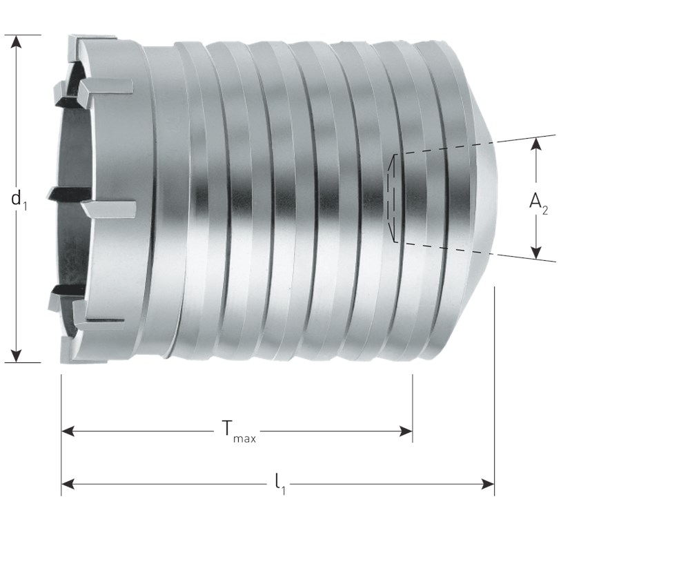 Hamerkroonboor met konus aansluiting (1:8). Robuuste uitvoering voor zwaardere werkzaamheden.