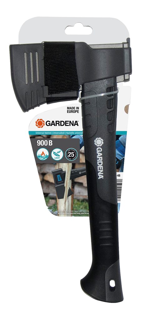 Contacteer onsDe GARDENA Handbijl 900 B is dankzij de slanke, enkelhandige vorm een veelzijdig en degelijk gereedschap. Door de perfecte balans van bijlblad en bijlkop is de bijl ideaal voor het hakken van aanmaakhout of het snoeien van kleine bomen Door het compacte formaat is hij gemakkelijk mee te nemen, bijvoorbeeld bij een trektocht. Voor een optimale gewichtsverdeling en meer slagkracht heeft de bijl een goed gebalanceerd zwaartepunt dicht bij de bijlkop. De bevestiging tussen de bijlkop en de steel is onbreekbaar en bestand tegen zwaardere belasting. Met de hamerfunctie aan de kopse kant kunt u houten, kunststof of aluminium wiggen (geen stalen wiggen) in een houtblok slaan. Het geharde bijlblad van premium gereedschapsstaal vermindert de wrijvingsweerstand en waardoor hij gemakkelijker in het hout doordringt. Bovendien blijft het hars niet snel aan de bijl kleven. Deze universele handbijl wordt gekenmerkt door zijn comfort en veiligheid. De met glasvezel versterkte steel is tevens voorzien van softgrip, waardoor glijden wordt voorkomen en het werk zo veilig en comfortabel mogelijk kan worden uitgevoerd. Het hoekige uiteinde biedt veel veiligheid wanneer uw hand langs de steel naar beneden glijdt. GARDENA biedt 25 jaar garantie op de Handbijl 900 B, die in Europa wordt vervaardigd.
