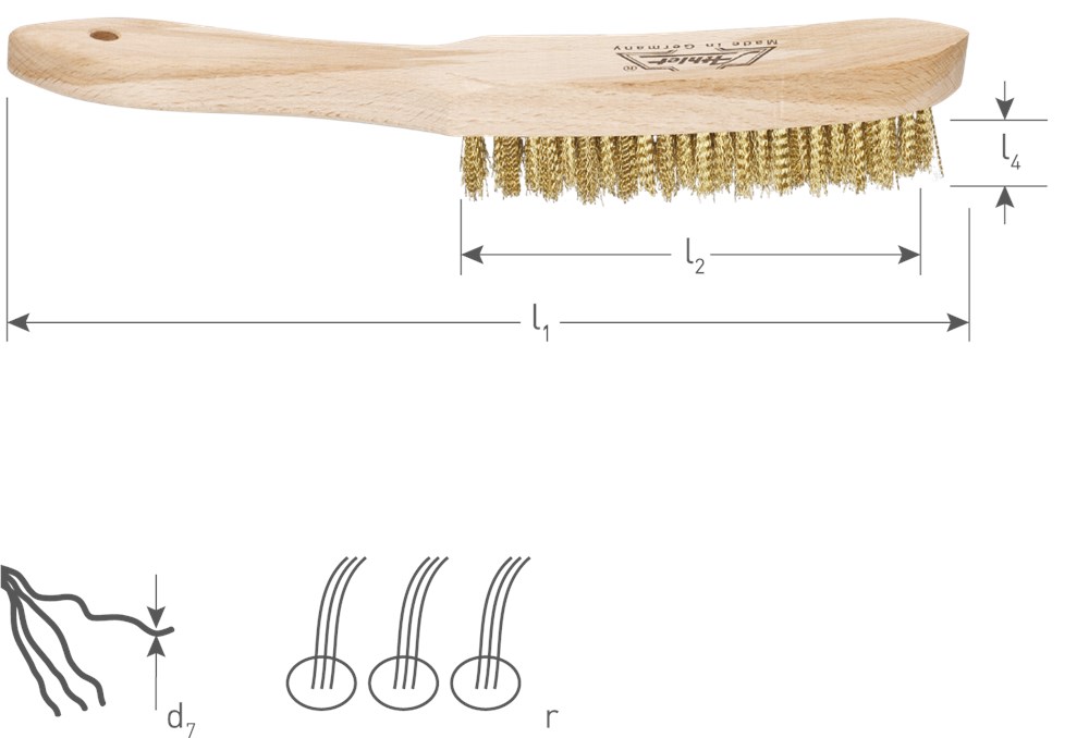 Houten handborstel voorzien van 0,25mm gegolfd kwaliteitsmessingdraad met hoge dichtheid.