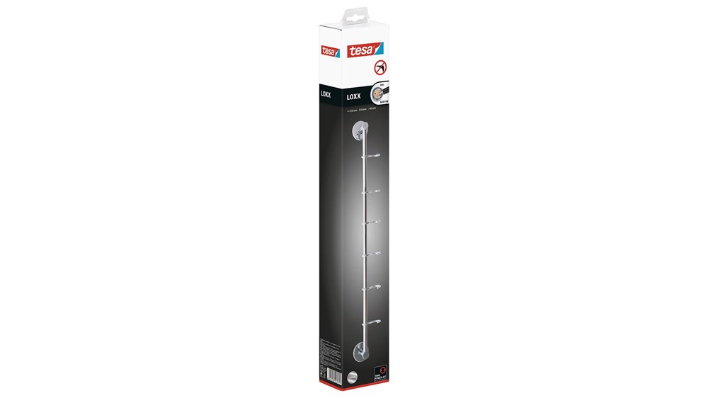 Contacteer onsDe ronde tesa® Loxx handoekhouder biedt je een goede plek om je handdoekken aan zes S-vormige haken te hangen - of wellicht kan het dienstdoen als een uithangbord voor accessoire. Met zijn hoogglans verchroomde afwerking en bijzondere ontwerp past hij mooi in elke omgeving. Dankzij de zelfklevende montage-oplossing kan hij overal worden bevestigd. Het is niet nodig om te boren en er is dan ook geen schade aan de oppervlakken. Het uitharden van de lijm duurt 12 uur. De handoekhouder kan snel en zonder lijmresten worden verwijderd en elders worden bevestigd met adapter BK23-2. tesa.Power.Kit Glue: Let op! Bij gebruik kunnen gevaarlijke inhaleerbare stofdeeltjes worden gevormd. Stof niet inademen.