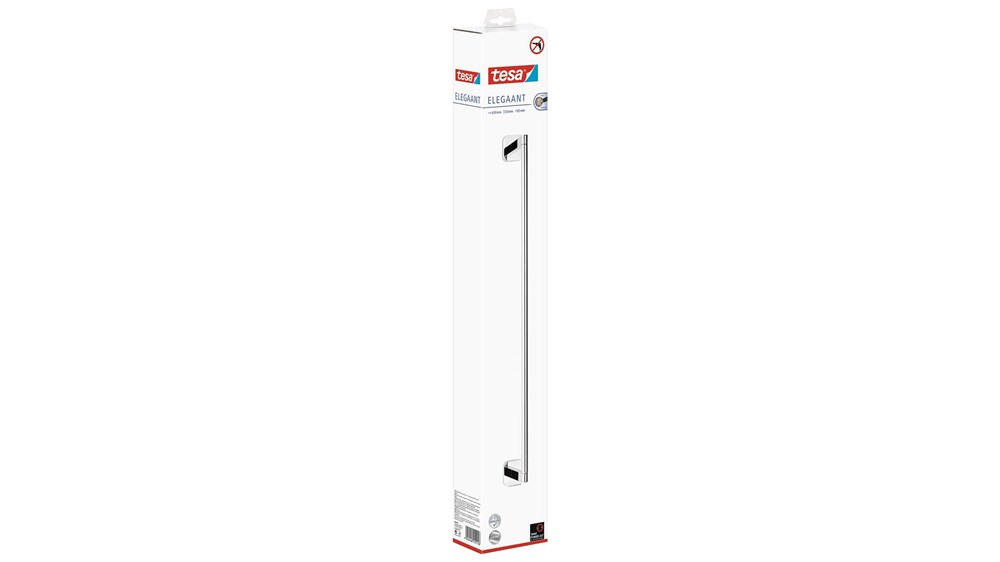 Contacteer onsDe strakke en chique uitstraling geeft de tesa® Elegaant handdoekstang klasse. Dankzij een hoogglans verchroomde afwerking op een solide metalen behuizing, is de stang stevig en kan ook zwaardere handdoeken vasthouden. waterproof en roestvrij, de stang is gemaakt om lang mee te gaan. De stang wordt aangebracht met een zelfklevende oplossing die 12 uur moet drogen. Het is niet nodig om te boren, waardoor muren en tegels intact blijven. Je kunt hem en zonder lijmresten verwijderen en hem ergens anders ophangen met adapter BK20-2. tesa.Power.Kit Glue: Let op! Bij gebruik kunnen gevaarlijke inhaleerbare stofdeeltjes worden gevormd. Stof niet inademen.
