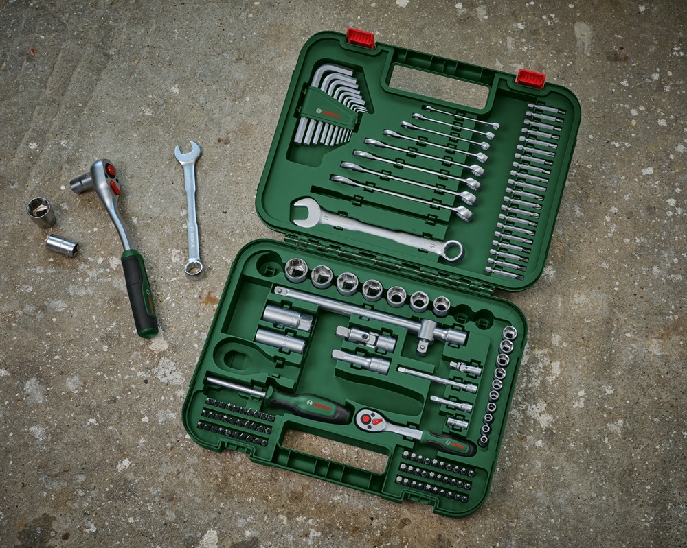 Maak het monteren van wielen, reparaties van meubels en allerlei andere klussen eenvoudiger met deze multifunctionele set: de Bosch Advanced 132-delige set. Bestaande uit hoogwaardige ratels, combinatiesleutels, binnenzeskantsleutels, een bit-schroevendraaier en accessoires worden deze essentiële gereedschappen voor doe-het-zelvers geleverd in een praktische koffer.