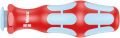 Hoogwaardige VDE handhouder, uitsluitend geschikt voor Wera VDE RVS wisselklingen. Het handgreep/wisselkling-systeem maakt snel verwisselen van de kling mogelijk en is dan ook veelzijdig inzetbaar. Kraftform Plus handgreep om prettig en ergonomisch verantwoord te kunnen werken en blaren en schuurplekken te voorkomen. Harde gripzones voor een hoge werksnelheid, zachte gripzones voor een hoge draaimomentoverbrenging.
