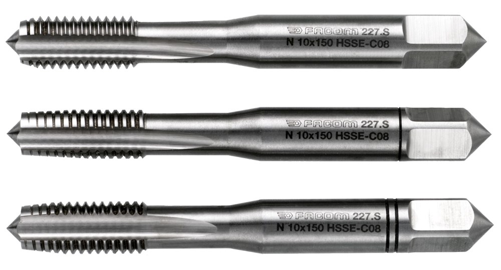 Contacteer onsFacom Artikelnummer: 227.S10X150T3 3 PRICISIE KOBALT HANDTAP M10X150 EB-INT-FI