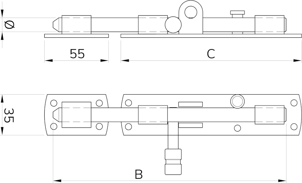 Contacteer onsIBFM Artikelnummer: 0411.301.0200 HANGSLOTGRENDEL / VERTICAAL / 12MM / 200MM / EXCLUSIEF SLUITPLAAT / V