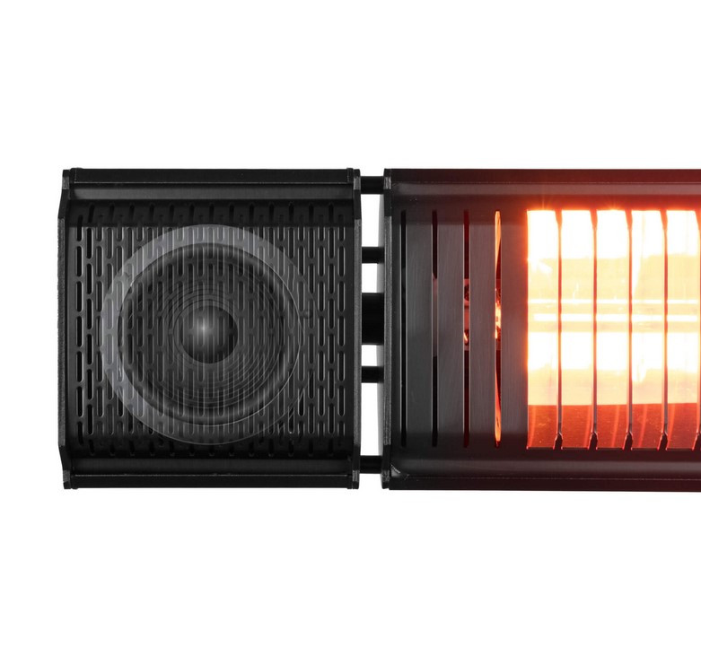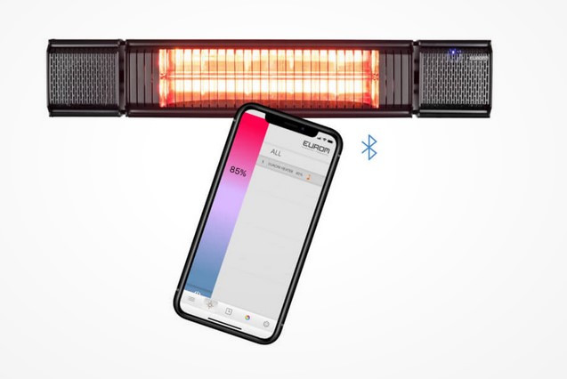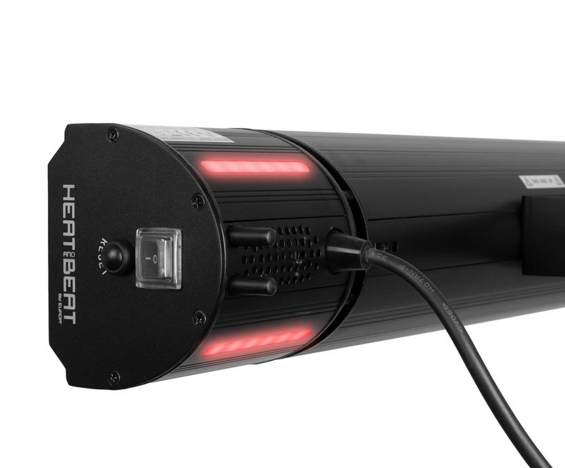 Contacteer onsDe Eurom Heat and Beat is een unieke terrasverwarmer van 2000 Watt. Ten eerste is het mogelijk om muziek af te spelen via de ingebouwde speakers (2 x 3 inch – 3 watt). Het enige dat hiervoor nodig is is een Bluetooth verbinding met de telefoon. Ten tweede heeft de Heat and Beat ingebouwde LED lampjes die de sfeer aanzienlijk verhogen
