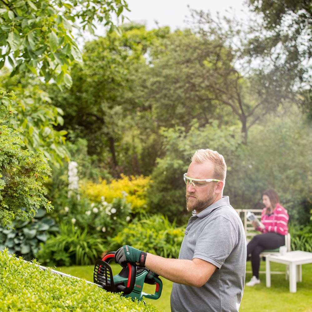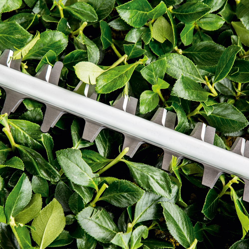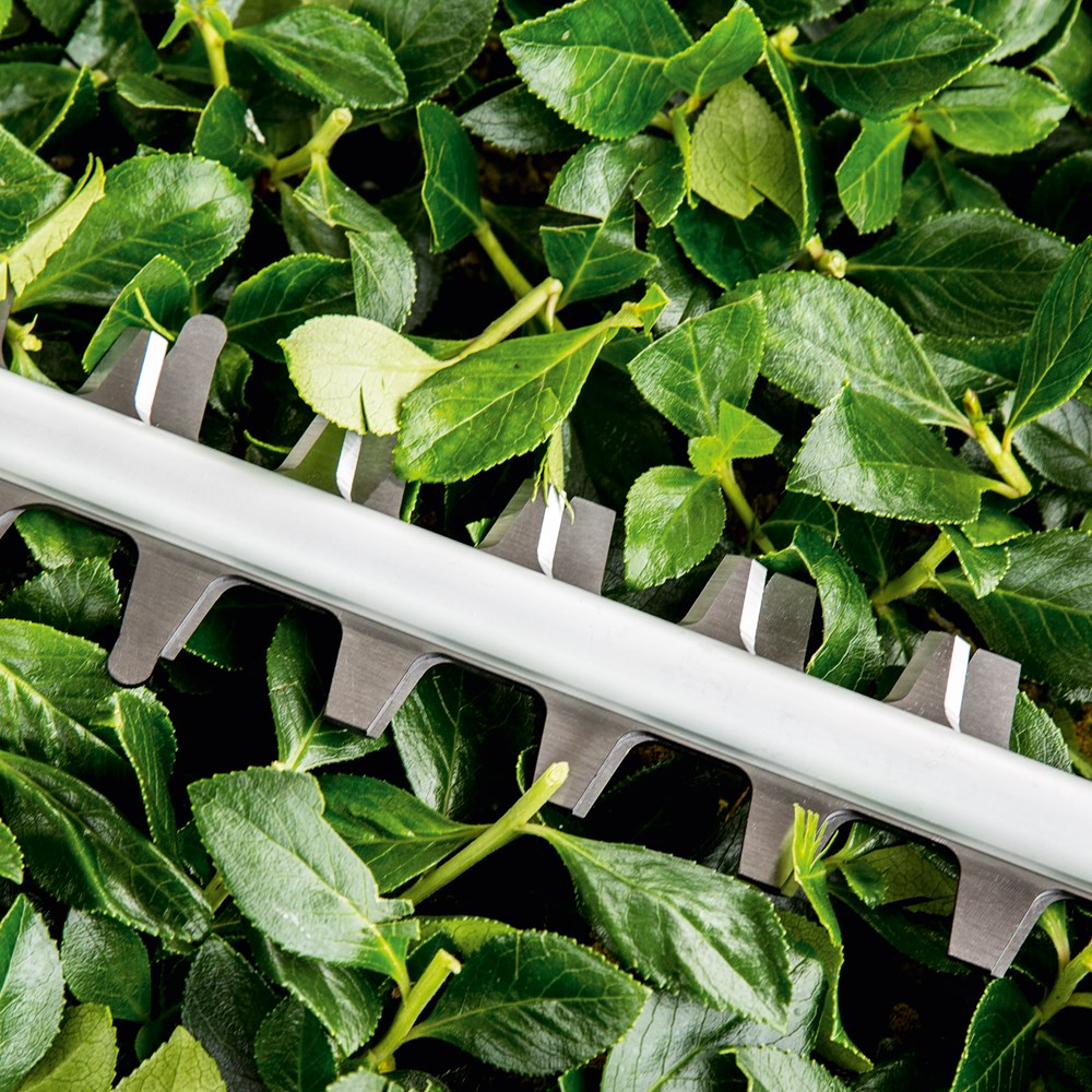 Optimaal presterende heggenschaar voor middelgrote heggen met 80% minder geluid De heggenschaar UniversalHedgeCut 60 met snoer is perfect voor het snel en stil snoeien van middelgrote heggen. Onder de ProSilence 91 dB geluiddempende kap gaat een energiezuinige motor van 480 W schuil, die met weinig energieverbruik een optimaal vermogen en optimale prestaties levert en 80% stiller is dan onze toonaangevende heggenscharen. Een slipkoppeling met hoog draaimoment maakt het mogelijk om gemakkelijk en zonder beschadiging van de motor door dikke takken te snijden. De lasergesneden, diamantgeslepen messen van 60 mm met een tandafstand van 30 mm snijden moeiteloos door takken met een diameter tot 30 mm voor snelle en indrukwekkende resultaten. Deze heggenschaar is perfect voor het snoeien van laurier-, taxus-, hulst-, haagbeuken- en haagconiferenheggen.
