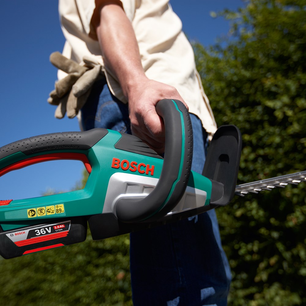 Ga dikke heggen met krachtig, snoerloos gemak te lijf De AdvancedHedgeCut 36V-65-28 op accu gaat dichte heggen en struiken met gemak te lijf. De borstelloze motor combineert krachtige prestaties met maximale efficiëntie, terwijl minder motorwarmte een langere levensduur mogelijk maakt. Aangezien de machine licht te hanteren is, zorgt dit voor minder belasting van rug, schouders en polsen van de tuinier. Zwitserse messen zorgen voor nauwkeurig snoeien, terwijl het door Bosch gepatenteerde Anti-Blocking-systeem mogelijk vastlopen vermijdt en zo zorgt voor continu snoeien en minder stilstandtijd. Dit is de allrounder voor het snoeien van alle heggen, waaronder ook haagdoorn, berberis of sleedoorn, en voor takken tot max. 28 mm. Het gereedschap maakt deel uit van het 36V POWER FOR ALL-systeem. Eén accu kan worden gebruikt voor alle 36V POWER FOR ALL-gereedschappen.