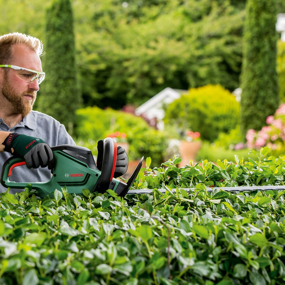 Optimale prestaties en 80% stiller: voor het snoeien van middelgrote heggen De heggenschaar UniversalHedgeCut 50 met snoer is perfect voor het stil en gemakkelijk snoeien van middelgrote heggen. Onder de ProSilence 91 dB geluiddempende kap gaat een energiezuinige motor van 480 W schuil, die met weinig energieverbruik een optimaal vermogen en optimale prestaties levert en 80% stiller is dan onze toonaangevende heggenscharen. De lasergesneden, diamantgeslepen messen van 50 mm met een tandafstand van 26 mm snijden moeiteloos door takken met een diameter tot 26 mm voor snelle en indrukwekkende resultaten. Deze heggenschaar is perfect voor het snoeien van coniferen-, liguster-, meidoorn- en viburnumheggen.