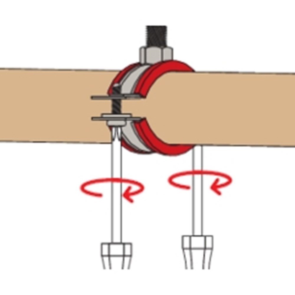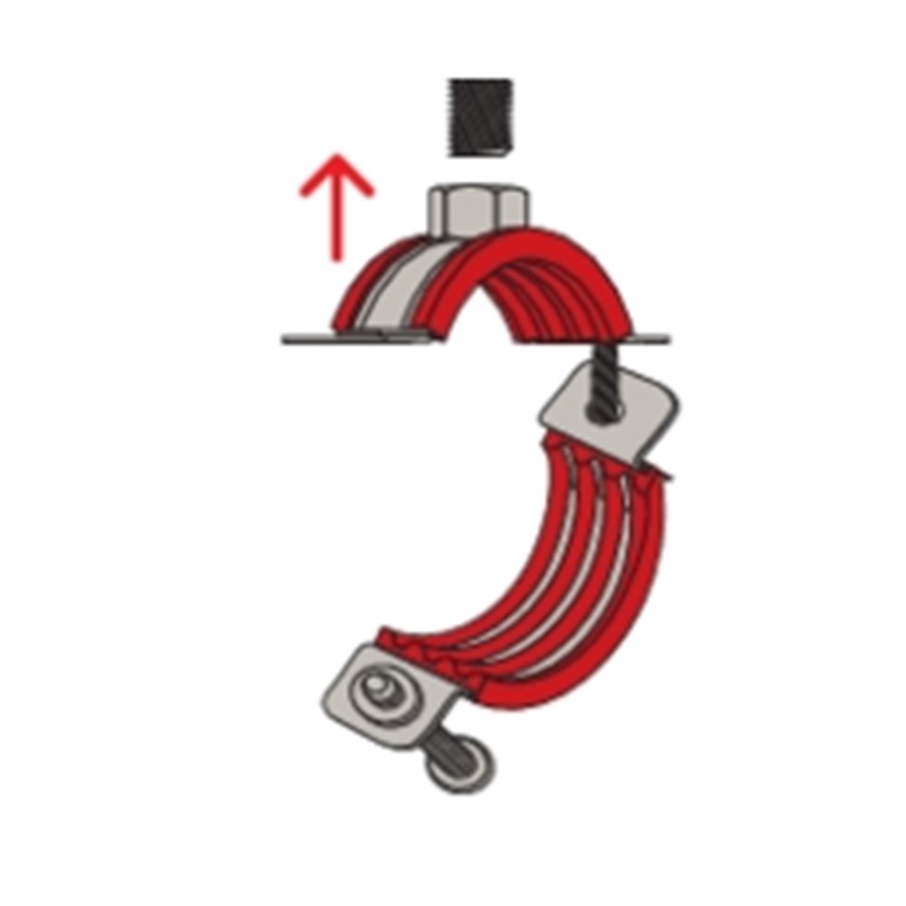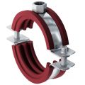 Contacteer onsDe fischer Pijpbeugel FRSH 102-116 voor de nominale maat 4" met geluiddempende laag voor het bevestigen van pijpen die zeer heet worden. Door de twee schroeven is een optimale aanpassing aan de pijpdiameter mogelijk. De moer met schroefdraad M8 voor de opname van draadstangen of stokschroeven. Pijpklemschroeven met verliesbeveiliging.