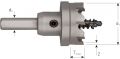 HM-dunwandige gatfrees, snijbreedte 2 mm. Daardoor tot en met diameter 100mm geschikt voor gebruik in de handboormachine. Alle modellen voorzien van een vaste adapter en verwisselbare centreerboor. Verwijder de uitwerpveer om de maximale snijdiepte te benutten. Bij dikker materiaal na elke 2-3mm lossen om de spanen te verwijderen.