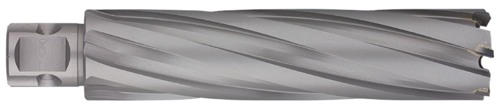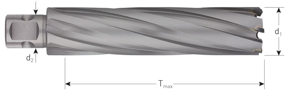 HM HARD-LINE kernboren met taps toelopende spiraalgroeven voor een excellente spaanafvoer en uitstekende boorresultaten, zelfs in moeilijk verspaanbare materiaalsoorten. De speciale tandgeometrie met voor-, midden- en nasnijders zorgt voor een trillingsvrije en rustige verspaning met lange standtijden.Universeel 19mm (¾") opname met WELDON en NITTO aansluitingen.
