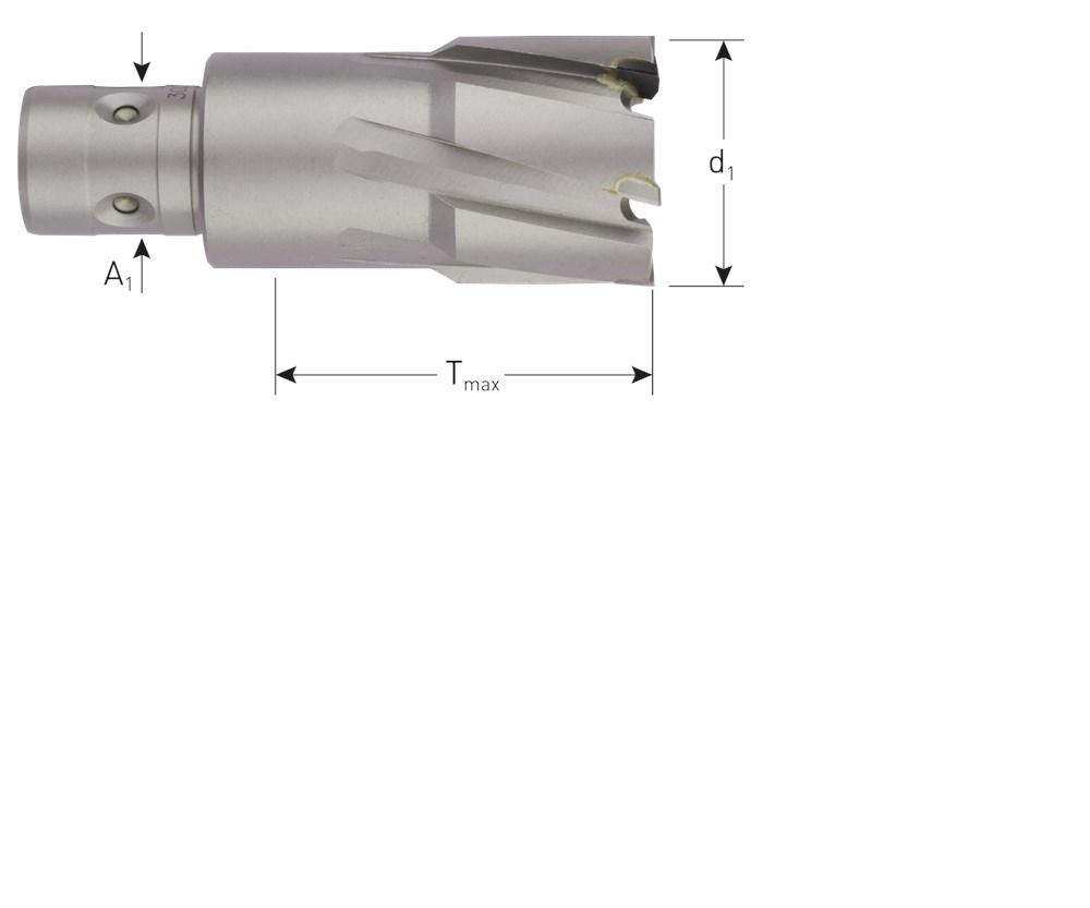 HM HARD-LINE kernboren met taps toelopende spiraalgroeven voor een excellente spaanafvoer en uitstekende boorresultaten, zelfs in moeilijk verspaanbare materiaalsoorten. De speciale tandgeometrie met voor-, midden- en nasnijders zorgt voor een trillingsvr