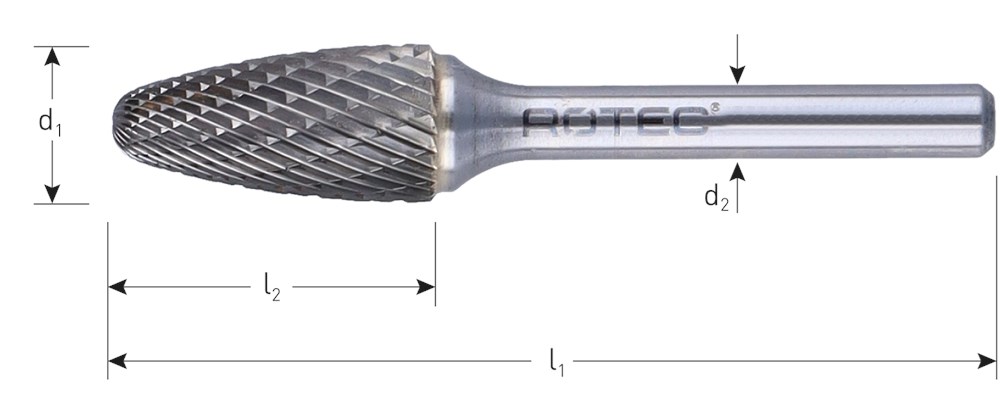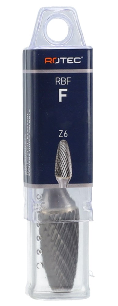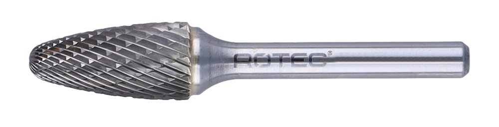 Hardmetalen stiftfrees in boomvorm met ronde kop, in diverse vertandingen.