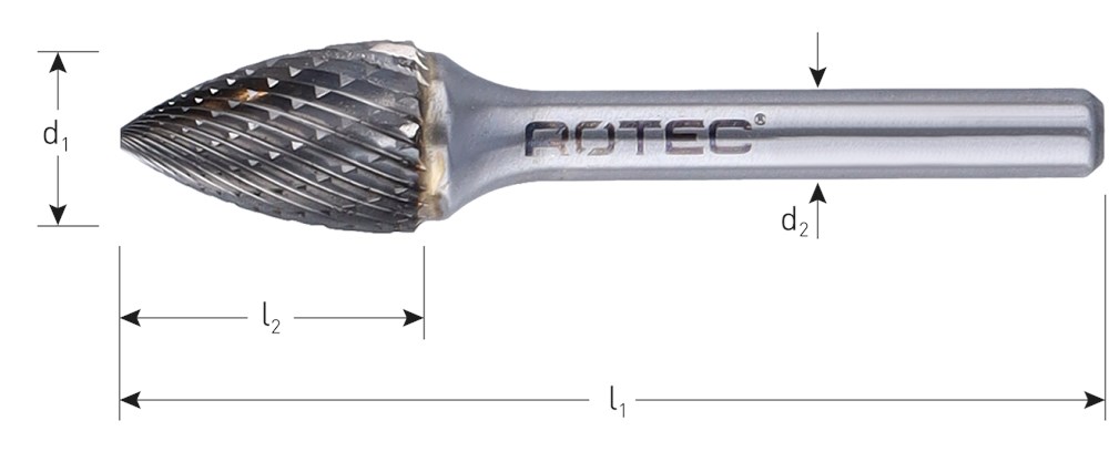 Hardmetalen stiftfrees in boomvorm spits, in diverse vertandingen.