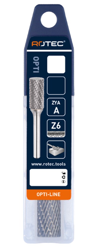 Hardmetalen stiftfrees in cilindervorm, zonder kopvertanding, kruisvertand.