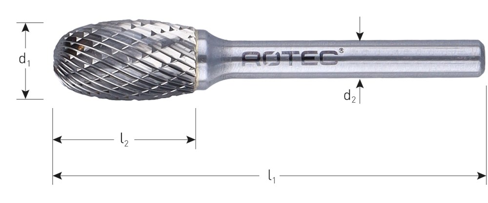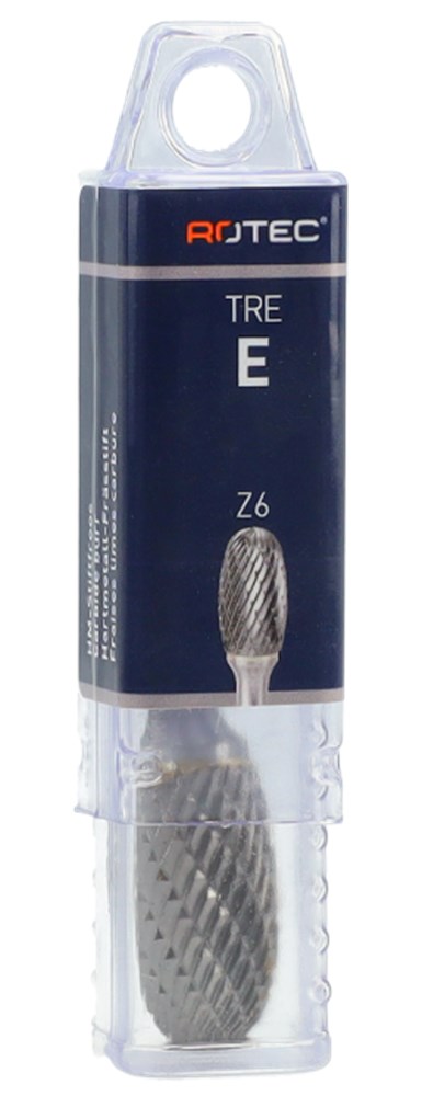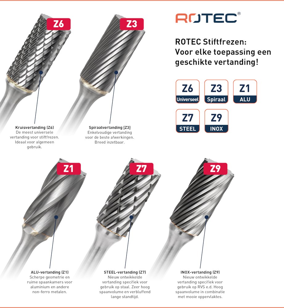 Hardmetalen stiftfrees in druppelvorm, in diverse vertandingen.