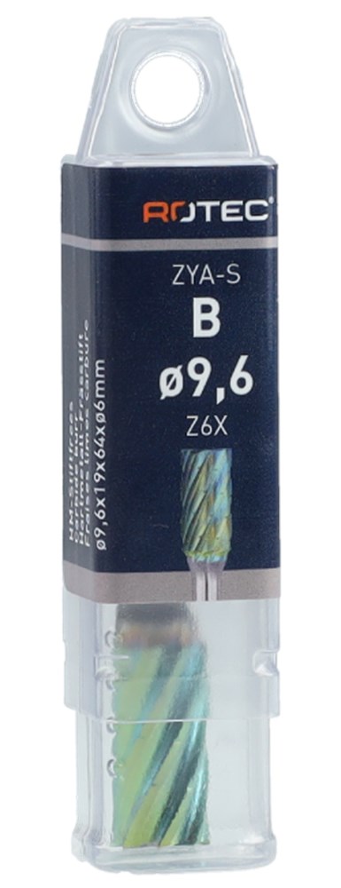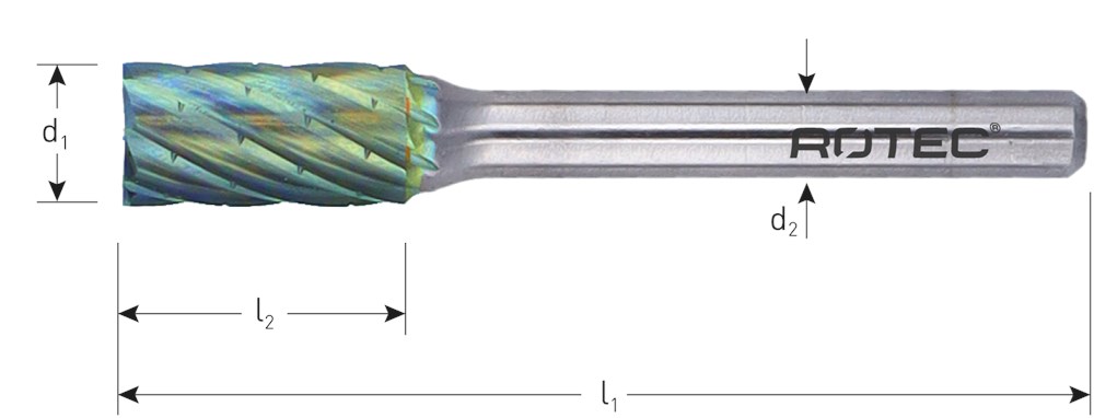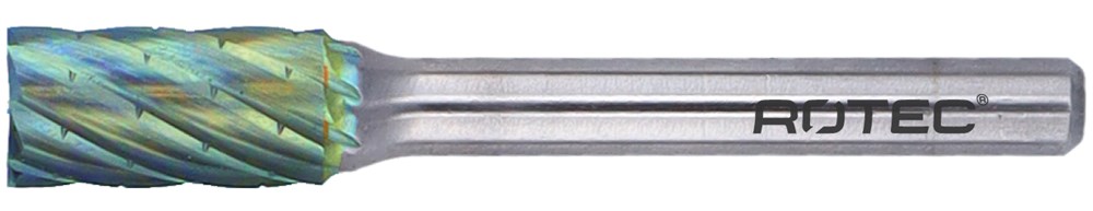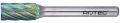 Hardmetalen stiftfrees in cilindervorm, met kopvertanding, kruisvertanding met spaanbreker. Model B (ISO: ZYA-S).
