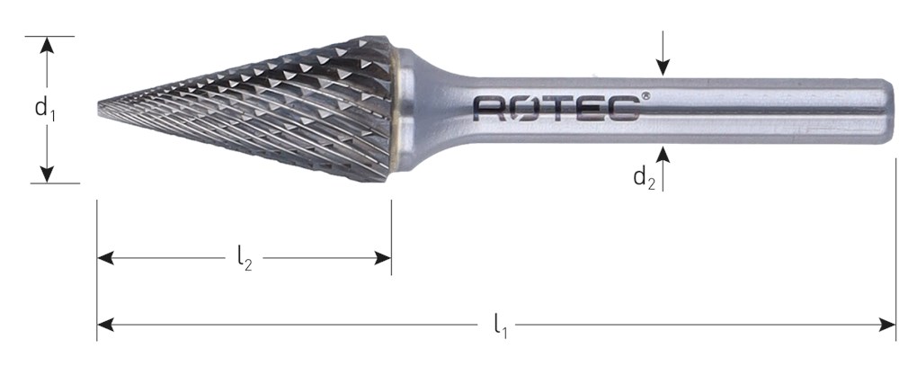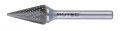 Hardmetalen stiftfrees in kegelvorm spits, in diverse vertandingen.
