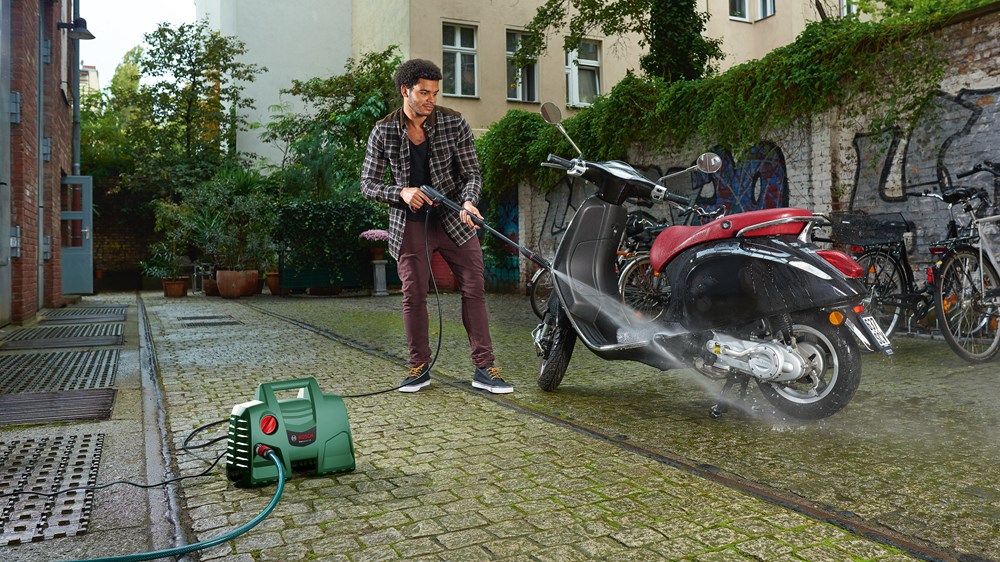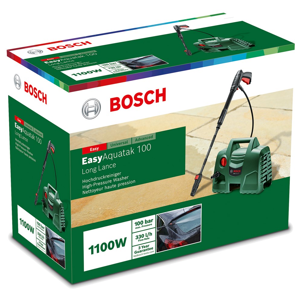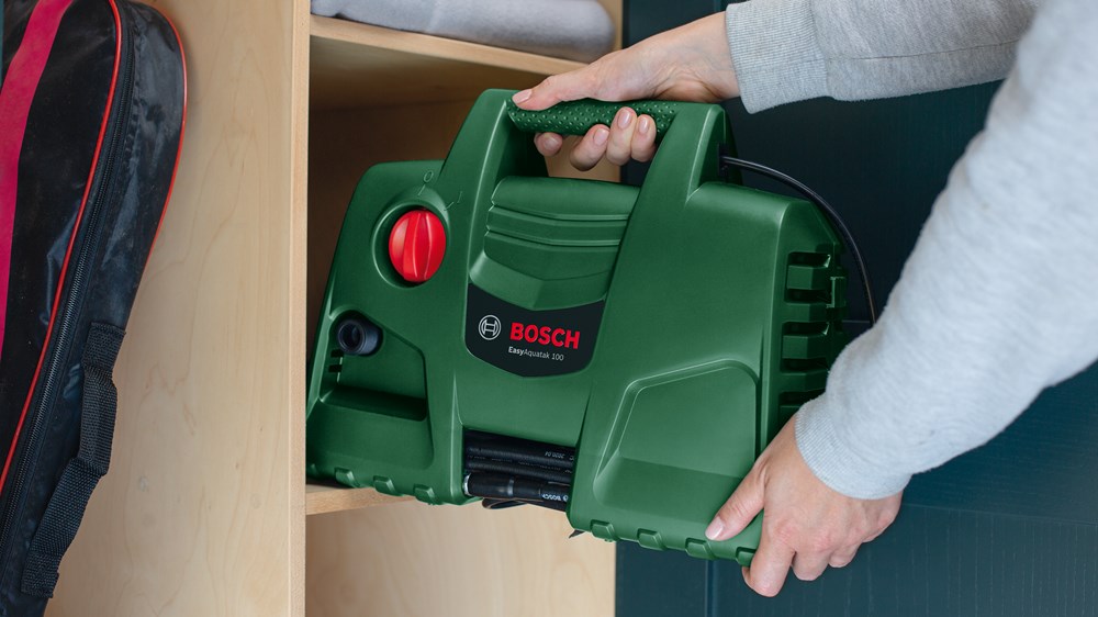 Deze compacte hogedrukreiniger is ideaal voor kleine tot middelgrote klussen rondom het huis Deze compacte hogedrukreiniger biedt snelle en probleemloze reinigingsprestaties. De EasyAquatak 100 is gemakkelijk te manoeuvreren en op te bergen door het compacte ontwerp. Met een reinigingsvermogen van 100 bar en een Vario-Jet-Fan-lans is het reinigen van voertuigen, terrassen en tuinmeubels eenvoudig. Snelkoppelingen maken het monteren eenvoudig.