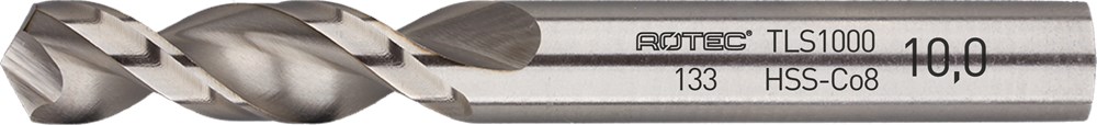 HSS-Co (8%) plaatwerkboor DIN 1897, type TLS1000. De TLS1000-spiraal zorgt voor een zeer goede spaanafvoer. Tophoek 130°. Speciale aanslijping volgens DIN 1412 Form S.