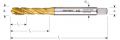 HSS-E machinetappen, DIN 371, metrisch [M], 60°, ISO2 (6H), verdikte schacht, type C met spiraalhoek 40°, TN2-gecoat (TiAlN + TiN) voor hogere snijsnelheden en langere standtijden.
